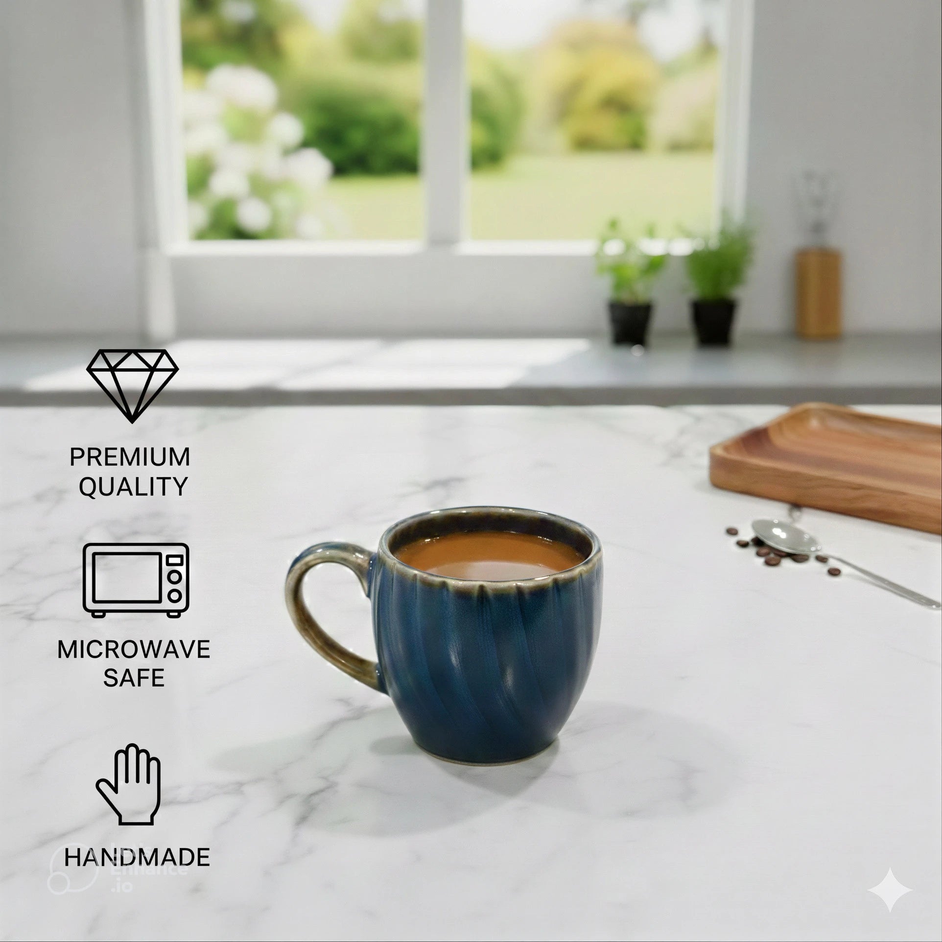 Design Khazana Ocean Blue Premium Tea Cup Set of 6 | Premium Quality, Microwave Safe